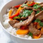 Start your bowl with a generous scoop of cooked brown rice or cauliflower rice at the base. Layer on your thin slices of perfectly cooked steak, follow with the sautéed peppers and onions, and spoon on the black beans for a hearty boost. Finally, add creamy avocado slices and sprinkle the fresh cilantro on top. Don’t forget a lime wedge on the side for that final burst of flavor.