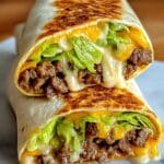 - Assemble Wraps: Lay each flour tortilla flat on a clean surface. Spread a generous layer of the special sauce evenly over each tortilla. Then add a portion of the beef and onion mixture, followed by shredded cheddar cheese, chopped lettuce, and sliced dill pickles on top.
