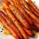 Honey Glazed Carrots are a simple yet delicious side dish featuring tender roasted carrots coated in a sweet and savory honey butter glaze, enhanced with garlic and a bright squeeze of lemon. Perfect for complementing any meal, this recipe offers a quick roasting method that brings out the natural sweetness of the carrots while adding a rich, flavorful finish.
