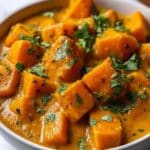 This Indian Pumpkin Curry is a flavorful and comforting dish featuring tender pumpkin cubes simmered in a rich and creamy coconut milk sauce infused with aromatic spices like curry powder, cumin, coriander, and turmeric. Perfectly balanced with a hint of heat and freshness from cilantro, this curry serves as a hearty main when paired with rice or naan bread.