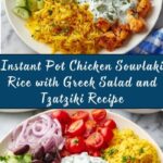 Instant Pot Chicken Souvlaki Rice with Greek Salad and Tzatziki Recipe