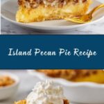Island Pecan Pie is a tropical twist on the classic pecan pie, featuring a luscious filling made with coarsely chopped pecans, drained crushed pineapple, and sweetened coconut, all baked in a flaky pie crust. The pie is crowned with homemade almond whipped cream and garnished with toasted coconut for a creamy, nutty finish that’s perfect for any dessert table.