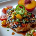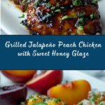 - Serve: Remove the chicken from the grill and top with the remaining peach-jalapeño mixture from the skillet. Garnish with freshly chopped cilantro for a burst of color and freshness. Serve immediately.