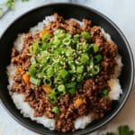 A flavorful and easy-to-make Korean Ground Beef Bowl recipe featuring tender ground beef cooked with a savory and slightly spicy sauce, served over fluffy rice and garnished with green onions and sesame seeds. Perfect for a quick weeknight meal with authentic Korean flavors.