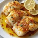This Lemon Butter Baked Cod recipe features tender white fish fillets baked to perfection in a zesty lemon butter sauce. Lightly coated with seasoned flour and finished with a sprinkle of paprika, it’s an easy and flavorful meal perfect for dinner any night of the week.
