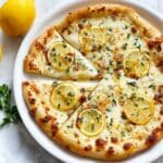 This vibrant Lemon Pizza features a crispy golden crust topped with aromatic garlic olive oil, fresh sliced lemons, tangy crumbled feta cheese, and fragrant herbs, finished with a hint of red pepper flakes for a touch of heat. Perfect for a light, flavorful meal or appetizer, this refreshing pizza combines the zestiness of citrus with savory Mediterranean flavors.
