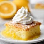 Top each slice with a generous dollop of freshly whipped cream or Cool Whip for a light, fluffy finish. For extra indulgence, add a scoop of vanilla ice cream on the side to create a delightful contrast between warm cake and cold creaminess. A few fresh lemon slices scattered on the plate make a pretty, natural garnish that also hints at the lemon flavor inside.