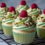 - Decorate Cupcakes: Pipe or spread the vanilla buttercream frosting onto the cooled cupcakes. Optionally, garnish with chopped pistachios for extra texture and visual appeal.