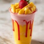 A refreshing and fruity Mango Strawberry Sunrise Frappuccino that blends frozen mango and strawberries with milk and ice for a creamy, sweet treat. Perfect for a quick summer pick-me-up or a delicious afternoon cool-down.