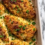 Yes! Boneless, skinless chicken thighs can be used. They may require slightly longer baking time but will offer even more juiciness and flavor, complementing the mayo-Parmesan topping wonderfully.