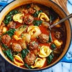A hearty and comforting Meatball and Tortellini Soup featuring flavorful meatballs, tender cheese tortellini, fresh spinach, and a savory tomato broth. This easy-to-make soup combines Italian seasonings with wholesome ingredients for a satisfying meal perfect for any day of the week.