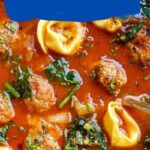 - Simmer with meatballs and tortellini: Add the cooked meatballs to the pot. Carefully drop the cheese tortellini into the simmering soup. Cook for about 7-8 minutes, or until tortellini are tender and cooked through.