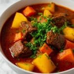 This stew freezes wonderfully. Portion it into freezer-safe containers or heavy-duty freezer bags and freeze for up to 3 months. When you’re ready for a comforting meal, just thaw it overnight in the fridge before reheating. The beef will stay tender and the vegetables retain their lovely texture even after freezing.