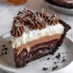 Mississippi Mud Pie is a rich and indulgent chocolate dessert featuring a fudgy cocoa-based filling baked in a pre-made graham cracker crust. Topped with melted mini marshmallows and finished with whipped cream and mini chocolate chips, this layered pie is perfect for chocolate lovers seeking a decadent treat.