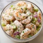 This New York Deli Shrimp Salad is a refreshing and flavorful seafood dish featuring tender poached shrimp tossed in a zesty, creamy dressing with celery, red onion, and fresh dill. Perfect for a light lunch or a deli-style picnic, this shrimp salad combines a vibrant Old Bay seasoning kick with tangy Dijon mustard and lemon juice for a classic East Coast taste.