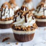 To freeze, place the cupcakes on a baking sheet until firm, then transfer them to an airtight container or freezer bag. They can be stored in the freezer for up to 2 months. When ready to enjoy, thaw them overnight in the fridge to preserve the creamy texture without sogginess.