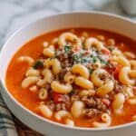 This classic Old-Fashioned Goulash is a comforting and hearty one-pot meal featuring ground beef, tender elbow macaroni, and a rich tomato sauce seasoned with Italian herbs. Perfect for a quick and satisfying dinner, it’s topped with melted cheddar cheese and fresh parsley for added flavor and color.