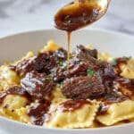 Reheat leftovers in a skillet over low heat to preserve the sauce’s richness and prevent the ravioli from becoming mushy in the microwave. Adding a splash of beef broth or water helps keep it moist and fresh.