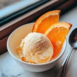 For a unique twist, serve scoops of orange ice cream in hollowed-out orange halves to create an eye-catching presentation. You can also layer it in parfait glasses with granola and a drizzle of honey for a refreshing and elegant treat that’s perfect for entertaining.
