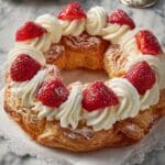 This Paris-Brest Pastry with Whipped Cream and Strawberries Recipe is a delightful journey into French patisserie that’s sure to become a new favorite. Its elegant look and irresistible combination of light pastry, fluffy whipped cream, and succulent strawberries make it a spectacular dessert for any occasion. Trust me, once you try it, you’ll find it impossible not to share this sweet treasure with friends and family.