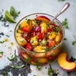 This fresh and vibrant Peach Salsa combines juicy peaches with zesty lime, spicy serrano chile, and aromatic cilantro for a perfect balance of sweet, tangy, and spicy flavors. Ideal as a light appetizer or a flavorful topping for tacos, grilled fish, or salads, this easy-to-make salsa requires no cooking and comes together in just 15 minutes.