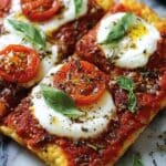 This Pizzeria Flatbread recipe offers a quick and delicious meal featuring ultra-thin pre-baked pizza crusts topped with fresh tomatoes, mozzarella, and aromatic basil. Infused with roasted garlic oil and a special pizzeria seasoning, it’s a perfect easy-to-make flatbread suitable for a casual dinner or appetizer.