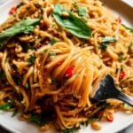 Store any leftovers in an airtight container in the refrigerator for up to 3 days. Because the rice noodles soak up sauce and moisture, it’s best to keep the fresh herbs and peanuts separate until you’re ready to serve to maintain their vibrant flavor and crunch.