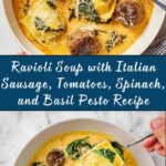 How to Make Ravioli Soup with Italian Sausage, Tomatoes, Spinach, and Basil Pesto Recipe
