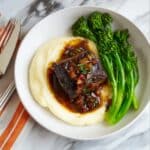 Tender and flavorful red wine braised short ribs slow-cooked in a rich sauce made with red wine, beef stock, aromatic vegetables, and herbs. This comforting dish is perfect for a special dinner and pairs wonderfully with creamy mashed potatoes and steamed broccolini.