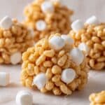 Using a cookie scoop, portion out your dough into balls. Flatten each ball slightly, place a marshmallow in the center, then carefully roll the dough around it to completely encase the marshmallow. For extra crunch, roll the dough balls in additional Rice Krispies before placing them on your baking sheet.