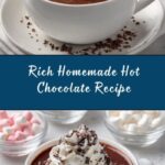 This Rich Homemade Hot Chocolate recipe offers a creamy, indulgent chocolate drink perfect for cozy winter days. Made with whole milk, heavy cream, semi-sweet chocolate, and cocoa powder, it delivers a deep chocolate flavor that’s smooth and decadent. Topped with optional whipped cream or marshmallows, this classic American beverage is easy to prepare on the stovetop and ready in just 15 minutes.