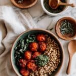 This Roast Cherry Tomato and Thyme Risotto with Basil Pesto is a creamy, flavorful Italian main course featuring perfectly roasted cherry tomatoes infused with fresh thyme, combined into a rich arborio rice risotto enhanced with Parmesan cheese and aromatic basil pesto. It’s a comforting vegetarian dish that balances fresh, herbal, and savory notes, ideal for a cozy meal.