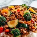 You can freeze the ground turkey and roasted veggies separately in freezer-safe containers or bags. Rice freezes well too, though it may become slightly softer after thawing. Label with dates and use frozen portions within 2 months to enjoy the flavors at their peak.