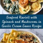 Seafood Ravioli with Spinach and Mushrooms in Garlic Cream Sauce Recipe