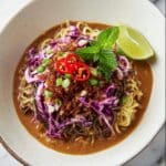 This vibrant Sesame Chili Cold Soba Noodle Salad combines nutty Chinese sesame paste with fiery chili oil and tangy black vinegar, tossed with tender soba noodles, crunchy red cabbage slaw, and your choice of smoked tofu or edamame for a refreshing, protein-packed meal perfect for warm days.