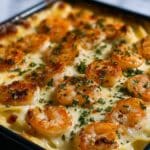 This Shrimp Scampi Pasta Bake combines succulent shrimp sautéed in a garlicky butter sauce with tender pasta, baked to perfection with a crispy parmesan topping. A quick and comforting 35-minute meal perfect for weeknight dinners or gatherings.