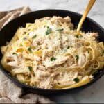 You can freeze this dish for longer storage by placing cooled portions in freezer-safe containers or bags. Freeze for up to 2 months. Just be sure to separate the pasta from the chicken and sauce if you plan to reheat and freeze so the pasta doesn’t get too mushy.