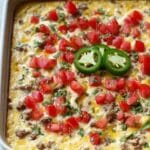 This smoked queso recipe combines Velveeta, Pepper Jack cheese, Rotel tomatoes, pickled jalapenos, and ground beef to create a creamy, smoky cheese dip perfect for snacking. Smoked low and slow on the grill, it’s infused with rich flavor and a spicy kick. Enjoy alongside chips, pork rinds, or fresh veggies for a crowd-pleasing appetizer.