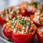 If you’re serving these at a party or family gathering, try placing the stuffed peppers on a large platter arranged in a circle, garnished with extra herbs and a drizzle of ranch or blue cheese dressing. You can also scoop the filling into mini bell peppers for bite-sized appetizers that everyone will love.