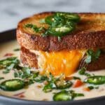 This Spicy Jalapeño Popper Soup with Grilled Cheese Dippers combines the creamy, cheesy goodness of a jalapeño popper with a comforting bowl of warming soup. Infused with fresh jalapeños, sharp cheddar, mozzarella, and cream cheese, the soup is rich yet balanced by a touch of smoky paprika and cumin. Paired perfectly with crispy, golden grilled cheese strips for dipping, this dish is a crowd-pleaser ideal for cozy lunches or dinners, blending spicy, creamy, and crunchy textures in each bite.