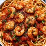 This dish doesn’t freeze as well due to the delicate texture of the shrimp and pasta, which can become mushy when thawed. For best results, freeze the sauce separately without the shrimp or pasta if you want to prep ahead. Thaw the sauce and freshly cook shrimp and pasta when ready.