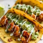 It’s best not to freeze this recipe fully assembled, especially because the slaw will lose its crunch. You can freeze the cooked shrimp alone in a freezer-safe container for up to one month. Thaw gently overnight in the fridge before reheating and assembling your tacos fresh.