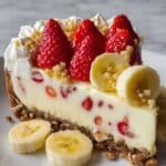 Before serving, adorn your pie with beautiful swirls of whipped cream, additional slices of fresh strawberries and bananas, and if you like, a sprinkle of colorful sprinkles to add a cheerful, inviting finish. Slice it up carefully and prepare to wow your guests with every bite of this creamy, fruity masterpiece.