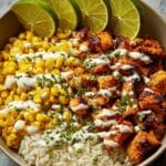 To truly elevate this dish, play with garnishes like a splash of hot sauce for heat, tangy pickled onions for crunch, fresh sprigs of cilantro for herbaceous freshness, and lime wedges for an extra zing of acidity. These little extras bring your Street Corn Chicken Bowl Recipe to life and allow you to customize each serving to your taste preferences.
