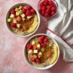 - Serve: Spoon the oatmeal into bowls and top with chopped nuts or seeds for crunch, along with an extra drizzle of maple syrup if desired. Serve warm and enjoy.