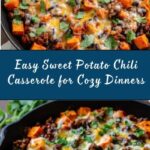 This Sweet Potato Chili Casserole is a hearty and flavorful dish combining ground beef or turkey with sweet potatoes, black beans, corn, and a blend of spices. Baked to perfection and topped with melted cheese, it makes for a comforting and wholesome meal perfect for family dinners.