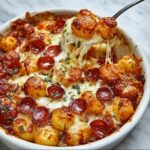Tater Tot Pizza Casserole is a comforting and easy-to-make dish combining crispy tater tots, savory Italian sausage, rich pizza sauce, melted mozzarella and cheddar cheeses, and classic pizza toppings like pepperoni and veggies. Baked to bubbly perfection, this casserole puts a fun twist on traditional pizza flavors in a hearty, family-friendly meal perfect for weeknights or casual gatherings.