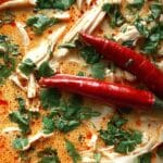 This Thai Coconut Chicken Soup, known as Tom Kha Gai, is a creamy, flavorful soup featuring tender chicken, aromatic herbs, and a perfect balance of spicy, sour, and sweet notes from red curry paste, coconut milk, lime juice, and fish sauce. It’s a comforting, gluten-free and dairy-free Thai classic that’s both easy to prepare and delightful to the palate.
