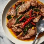 Start by slicing your beef thinly against the grain to ensure tenderness. Mince the garlic, slice the chilies, and tear the kaffir lime leaves for maximum aroma release. Having everything ready before you heat the pan ensures a smooth cooking process.