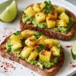 - Add Tropical Toppings: Top each slice with 1/4 cup chopped mango and 1/4 cup chopped pineapple, adding natural sweetness and tropical flair. Garnish with extra chopped cilantro for a pop of color and fresh herbal notes.